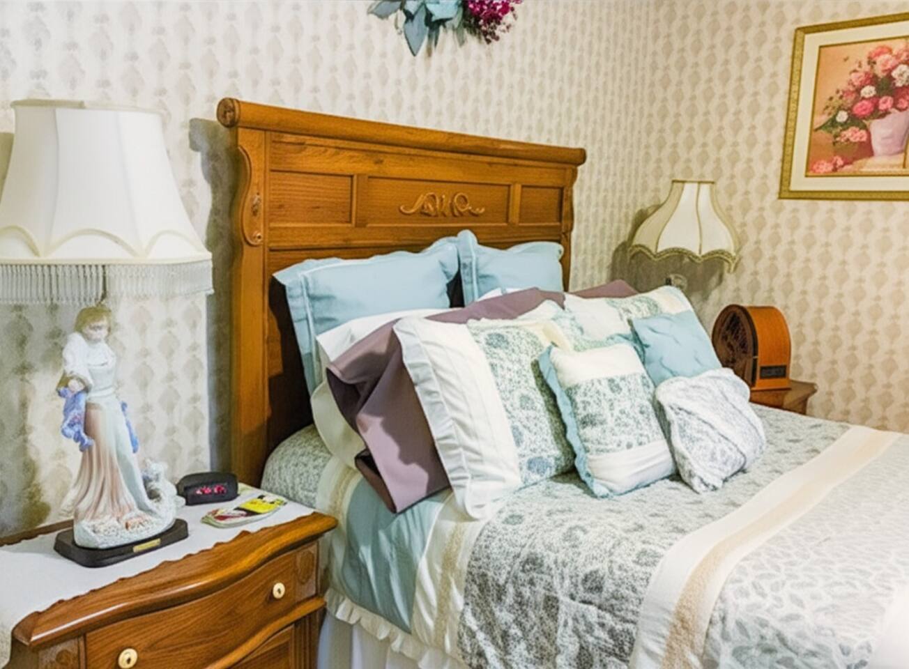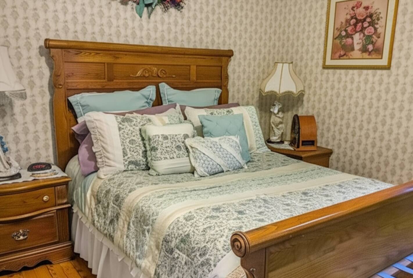 Welcome to your private retreat in the heart of the Pocono Mountains! Nestled on the second floor of the historic Manor House, Room #2 offers a unique blend of Victorian charm and modern comforts. Step into an inviting space where timeless elegance meets relaxation — the perfect escape for couples, solo travellers, or anyone seeking tranquillity and natural beauty. ✦ Why You'll Love Staying Here: ✦ ❖ Romantic Victorian Ambience: Drift off in a luxurious queen-size oak sleigh bed, complete with matching nightstands and a spacious armoire for your belongings. Enjoy a serene sitting area featuring two plush wing chairs and a charming table — perfect for reading, sipping wine, or planning your next adventure. ❖ Warmth & Homely Evenings: Unwind by the freestanding indoor fireplace, where flickering flames set a soothing mood, especially on cool mountain nights. ❖ Stunning Views of Nature: Large windows fill the room with natural light, offering peaceful vistas of Brodhead Creek and creating a perfect backdrop for relaxation. ❖ Private Ensuite Bathroom: Refresh in your full bathroom featuring a shower, stocked with essentials like plush towels, shampoo, conditioner, body soap, and shower gel. ❖ Modern Amenities at Your Fingertips: ✔ Air conditioning and heating for year-round comfort ✔ Flat-screen TV and free WiFi for entertainment ✔ Iron and clothing storage to keep you looking your best ✔ Free parking on premises for stress-free arrivals ✔ Fire extinguisher, smoke and carbon monoxide alarms, and a first aid kit for your safety ✔ Long-term stays welcome for those seeking an extended mountain escape ❖ Ideal Location: Located at Canadensis, PA, your room is perfectly positioned for exploring the natural beauty of the Poconos. Spend your days hiking scenic trails, visiting local waterfalls, fishing, antiquing, or indulging in fine dining and quaint local shops. Whether you're seeking a romantic getaway, a peaceful retreat, or a base to explore the wonders of the Pocono Mountains, Room #2 at the Manor House promises a stay you'll never forget. ❖ Breakfast: The bed and breakfast is currently not serving hot breakfast due to light construction. A continental breakfast is available. Book your stay today and experience Victorian charm with modern comfort!